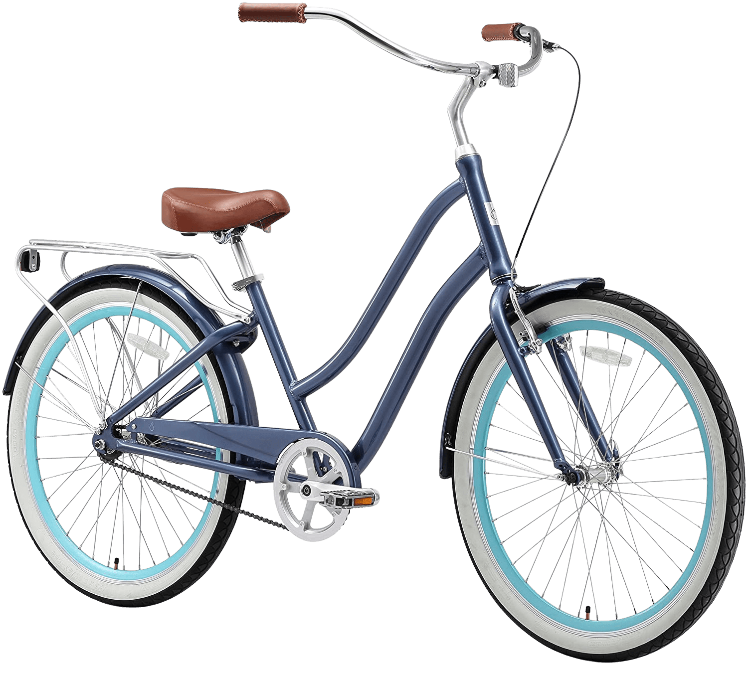 The Sixthreezero EVRYjourney is a customizable bike that should suit a variety of women. It comes in either a 24- or 26-inch frame. The EVRYjourney has hand brakes and a solid aluminum frame, and it’s available in three-, seven- and 21-speed models. It’s available in several colors and it comes with reflectors and a box with a saddle.